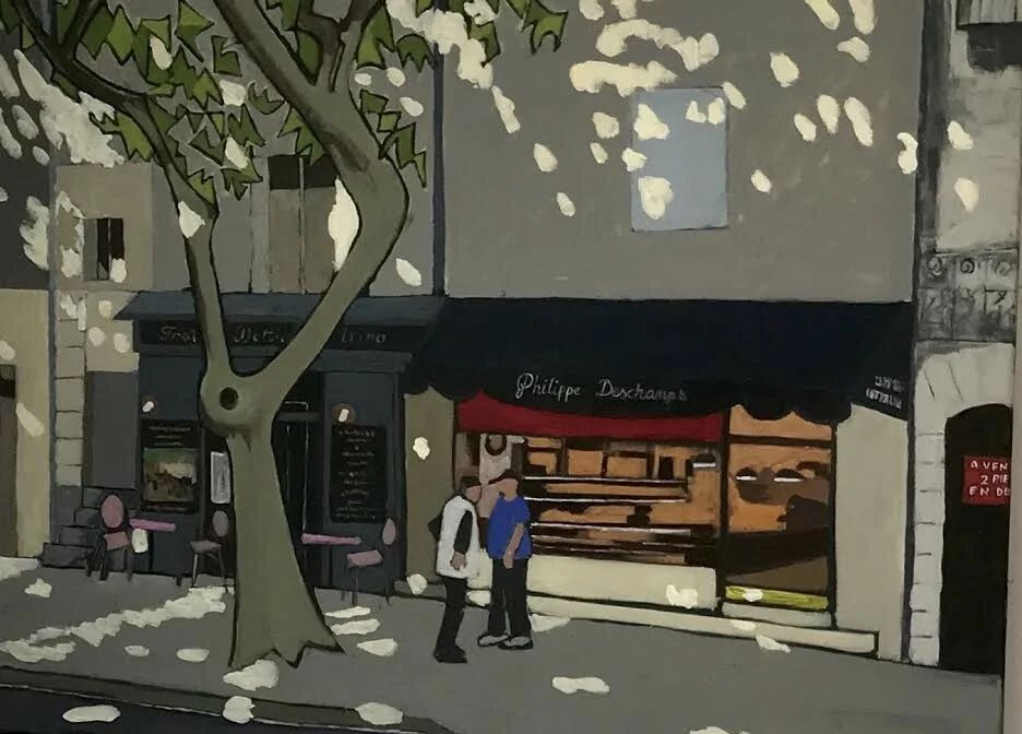 Acrylic on canvas 2009. 30 x 40 ins. This is just a shop on Bethnal Green Road, but the busy life around it tells the story of the East End of London. SOLD.